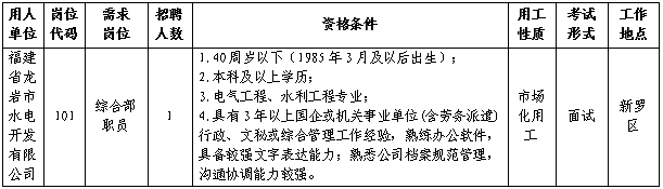 福建省龙岩市水电开发有限公司关于公开招聘市场化用工工作人员的公告