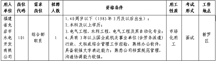 福建省龙岩市水电开发有限公司公开招聘市场化用工工作人员调整资格条件延期报名的补充公告