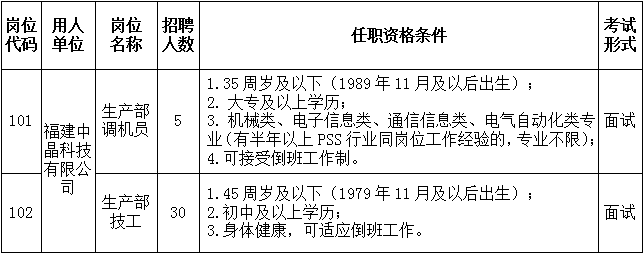 关于福建中晶科技有限公司招聘市场化用工工作人员的公告