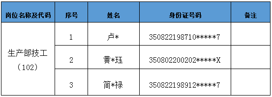 根据2025年12月3日在龙岩市投资开发集团有限公司官网发布的《关于福建中晶科技有限公司招聘市场化用工工作人员的公告》有关要求,经报名、资格审查、组织面试、体检、考察等程序,现将生产部技工岗位的拟录用人员名单公示如下。
